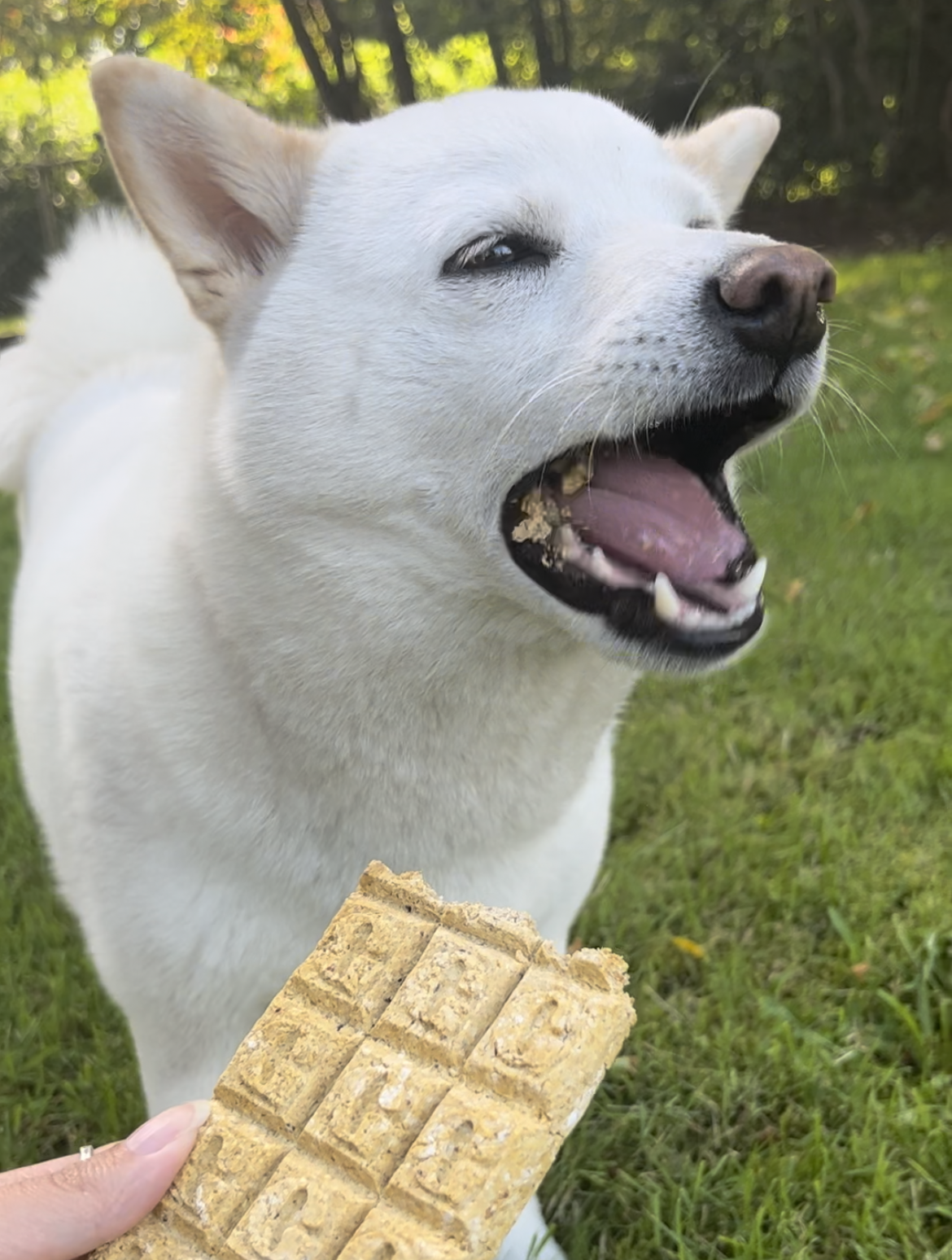 What started as dessert-inspired shapes (cannolis, chocolate bars, cupcakes) evolved with practicality in mind: hence our signature square — a design that’s clean, shelf-friendly, and easy to package. Every decision, from recipe layout to packaging illustration, comes from my studio to your shelves — a design-led pet brand in the making.