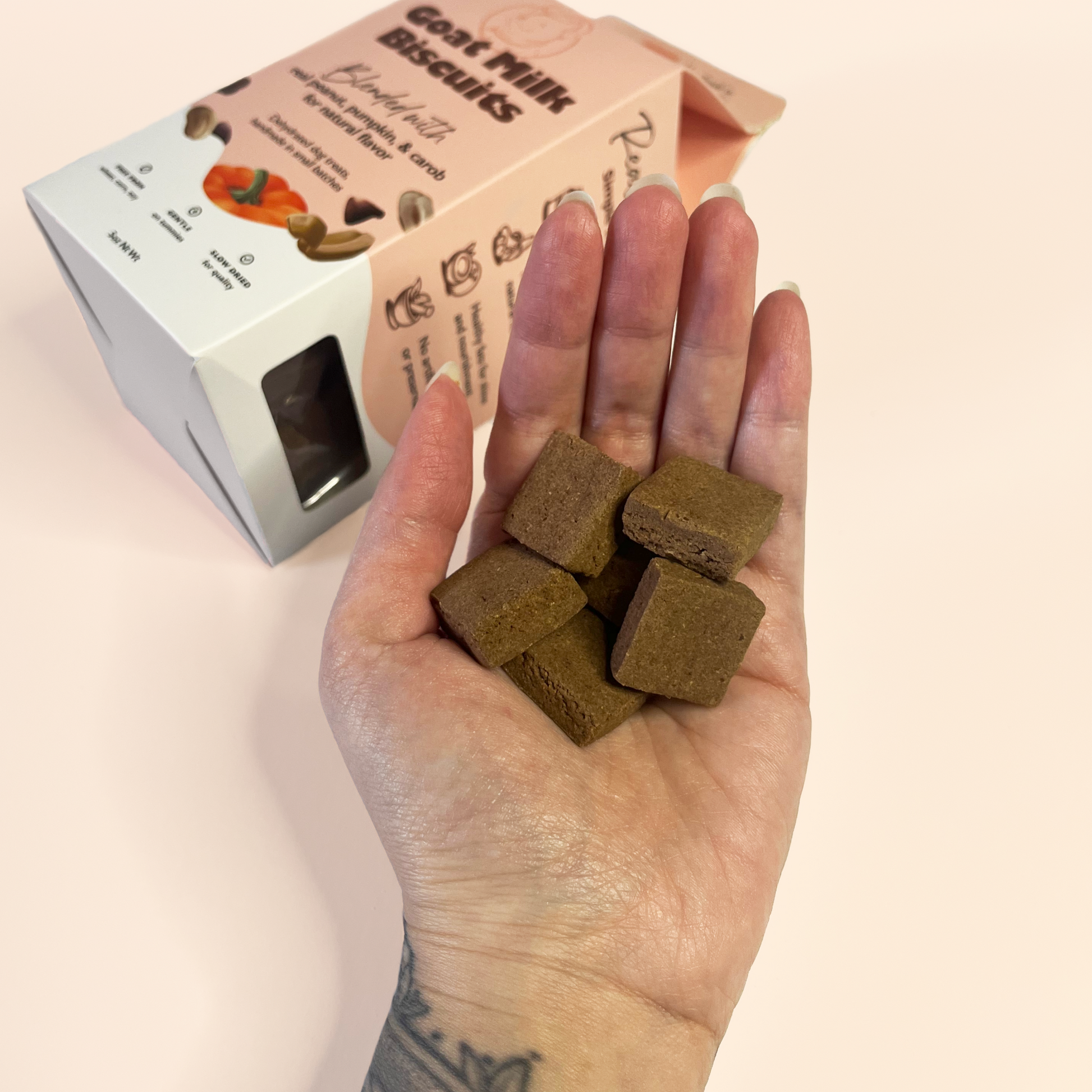 We're an AAPI-owned, woman-led small business crafting products with care, intention, and the same standards we'd want for our dogs. Every treat is made in small batches, powered by goat milk, and designed to be as functional as it is delicious.